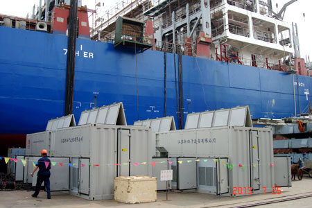 由凯翔电气科技股份有限公司设计制造的14.4MW大功率船用发电机组检测负载箱,已通过江苏新扬子造船厂项目验收,正式交付使用。通过凯翔船用发电机组检测负载箱,可为新扬子船厂的大功率船用发电机组进行检测与日常维护,可保证船用发电机组性能稳定,避免启动失败、性能劣化等问题,保障船舶运行安全。这也是凯翔负载在船用发电机组检测负载箱市场的又一典型案例,巩固了凯翔负载在船舶领域应用案例最多的地位。 此次凯翔为新扬子船厂提供的大功率船用发电机组检测负载箱,总功率高达14.4MW,可对400V至6.6kV范围的船用发电机组进行测试。系统可通过三种方式进行控制,灵活方便。负载既可使用本地开关进行直接控制,也可在百米外用控制箱进行远程控制,还可以使用凯翔科技独家研发的智能测控软件进行计算机控制。 通过凯翔负载智能上位机软件,用户只需简单设置,即可实现对干式负载的实时控制,从而对船用发电机组进行负荷测试,对机组的输出功率进行检验。通过软件预设的自动化实验,还可检测机组的稳态/瞬态电压、频率调整率、恢复时间、波动率、谐波含量等重要参数,及时发现机组性能是否满足国标要求。 作为国内发电机组检测行业的领军企业,凯翔科技建立了国内规模最大的干式负载研发中心和制造基地,凯翔负载在功率密度、绝缘耐压能力、智能化程度等方面均代表了国内最先进水平。如今,凯翔科技已为江南造船厂、黄埔造船厂、沪东造船厂等众多知名船企,以及703所、705所等众多船舶工业研究所提供检测服务,守护用户电力安全。 凯翔科技作为国际级高新技术企业,已通过了ISO9001国际质量体系认证,拥有业内首家企业技术中心,制定了业内首个负载质量标准:“干式交流负载”(Q/01KX001-2010)。其大功率船用发电机组智能干式负载柜已获得省科技厅“国际先进水平”科技成果认定。